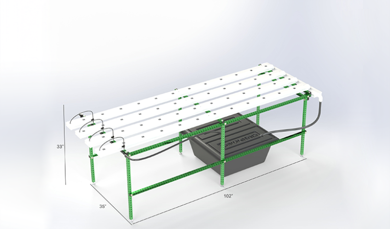 The perfect introductory system for the hobby grower or for educational purposes, this system fits well in any home or classroom. You could grow a wide variety of leafy vegetables and herbs using the recirculating hydroponic nutrient film technique (NFT). This system includes all of the channels, hardware, support, and plumbing in order to get started. We also offer a separate NFT starter kit to jump start your growing endeavors.