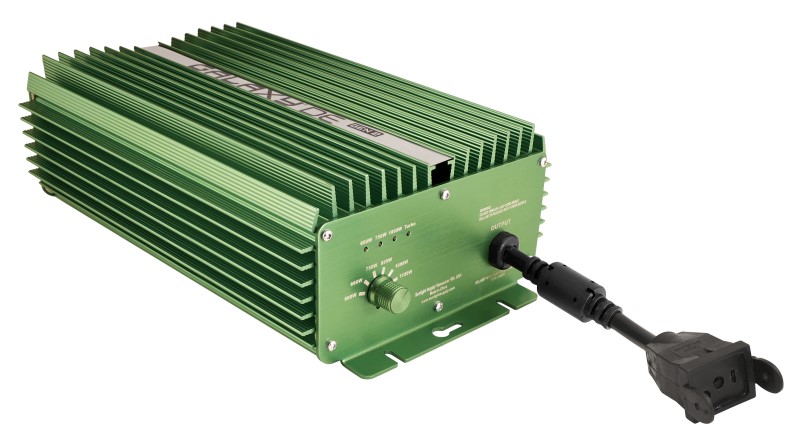 Features high frequency 110 kHz micro processing technology optimized for running double-ended lamps. This Galaxy� DE Gen 2 Select-A-Watt� ballast can operate a 1000 watt lamp at 600, 750, 875 and 1000 watts as well as Turbo Charge�. 600, 750, and 1000 watt lamps are also properly operated with this Galaxy� DE Gen 2 ballast. Set the desired wattage on the Select-A-Watt� dial and be sure to install a lamp that does not exceed your wattage setting. Very quiet operation and limited vibration. This ballast has been thermally optimized to operate with a passively cooled (non-fan) aluminum housing. Galaxy� DE Gen 2 ballast lamp cord receptacle is designed specifically for Sun System� brand reflectors. Includes a 6.5 ft Convertible Smart Volt� dual Ferrite, 120-240 V power cord and both 120 volt and 240 volts plugs. Industry-leading compliance with both FCC Article 18 Part A (governs commercial use) and FCC Article 18 Part B (governs residential use) as tested by independent US testing lab in a true as used configuration.