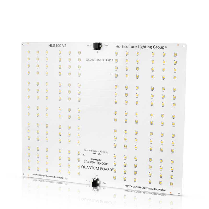 HLG 100 V2 uses our custom designed high efficiency white light Quantum Boards®. With a total of 192 Samsung LM301H LED's, this fixture produces 16,000+ Lumens with just 95 Watts of power. Equivalent to 220W T5 or 300W CFL output or 200W metal halide.